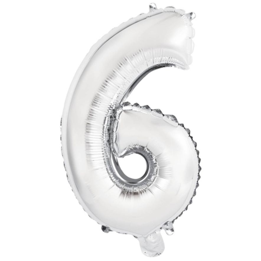 Folieballon nummer 6 i Sølv 75cm