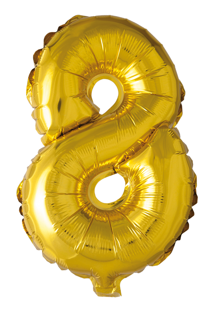 Folieballon nummer 8 i guld 41cm