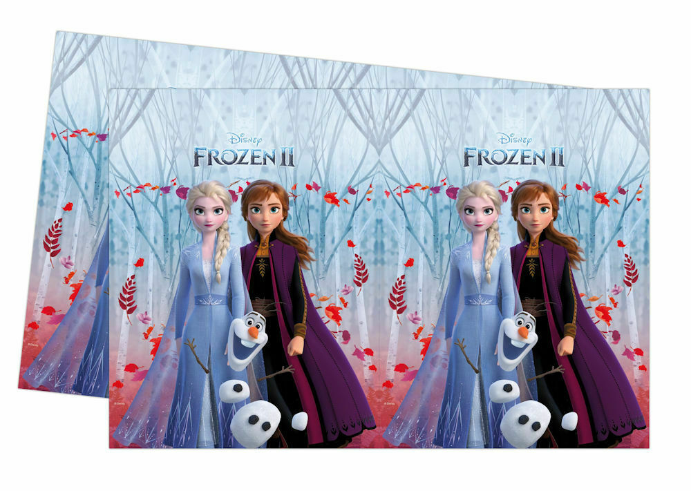 En dug med motiv på Disney Frost. På dugen finder du børnenes yndlingsfigurer Elsa, Anna og Olaf. Festdugen er perfekt at have på bordet til fejringer af fødselsdage, fester, fester, babyshower, dåb og andre festligheder.