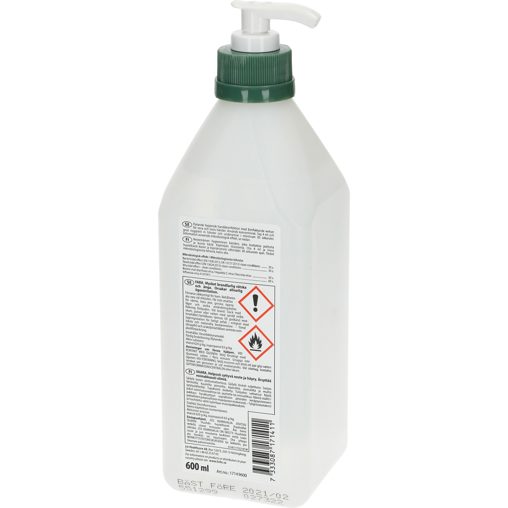 En hånd desinfektionsmiddel med fugtgivende effekt. De desinficerende blade en blød og glat hud. Undgå statisk elektricitet og sikre, at hænderne er tørre, før den næste operation begynder.