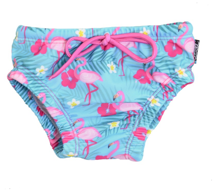 Et badetøj med en bleefunktion med et motiv af Flamingo! Tøjet sidder behageligt og er meget let, selvom det er vådt. Snøring fås i taljen, og den har en god pasform, der giver fri bevægelighed. Kan bruges sammen med andet badetøj eller dig selv.