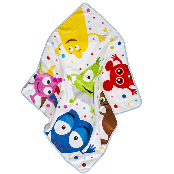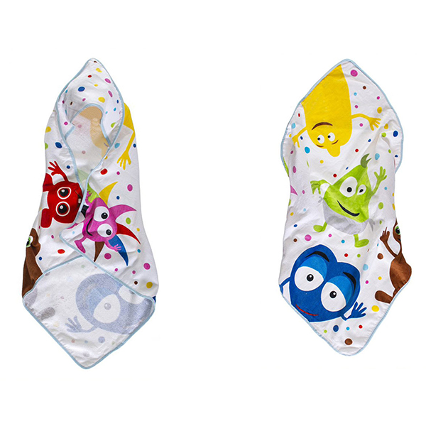 Køb skrigedrosler Badcape med motiver af farverige prikker og tegn Babba, Bibbi, Bobbo, Dadda, Diddi og Doddo. Badcapen kan bruges som et håndklæde på stranden eller andre strande. Denne kappe har en hætte, der gør det muligt for barnet kan nemt vikles efter badet.