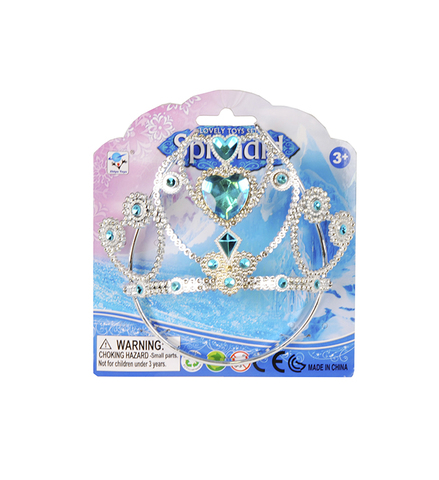 Prinsessediadem, 14 cm, Sølv med Blå Diamanter
