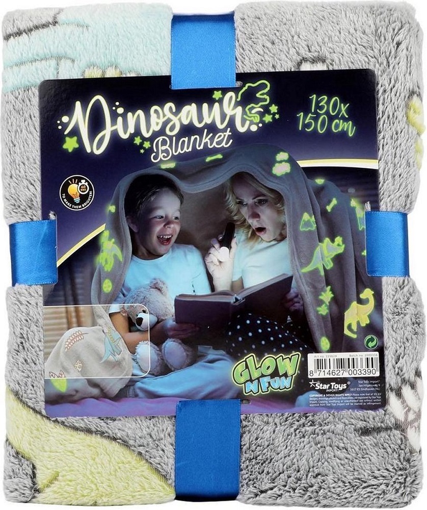 Bemærk at tæppet er Glow In The Dark og tager en vis tid i lyset for at kunne lyse op i mørket!