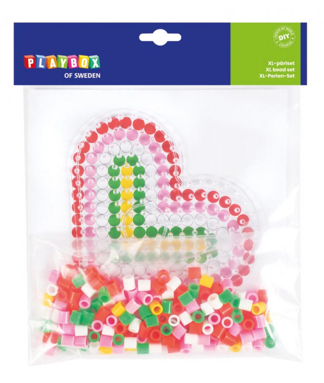 Lav et sødt hjerte! Perlesæt med store perler, perleplader og kredsløb. Perfekt til yngre børn, der lige har lært om perler. Perlepladerne kan genbruges så mange gange, du vil.