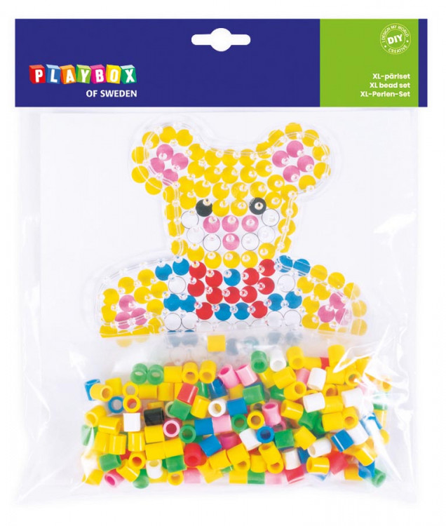 Perlen med søde bjørne! Perlesæt med store perler, perleplader og printkort. Perfekt til yngre børn, der lige har lært om perler. Perlepladerne kan genbruges så mange gange, du vil.