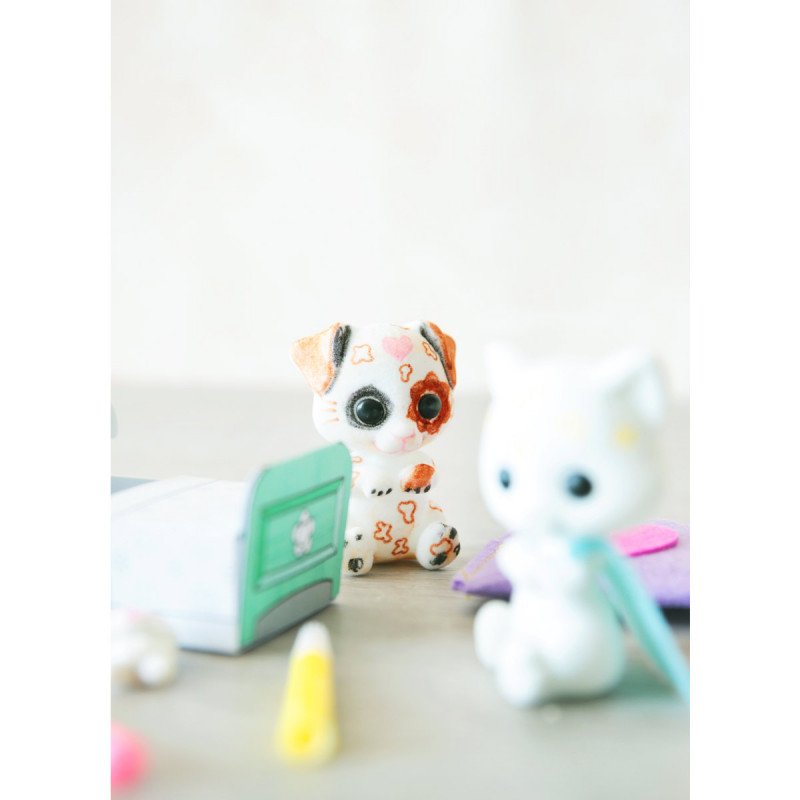 • Indhold: 3 hunde, 3 stykker følte tilbehør og klistermærker og en instruktion til farvning