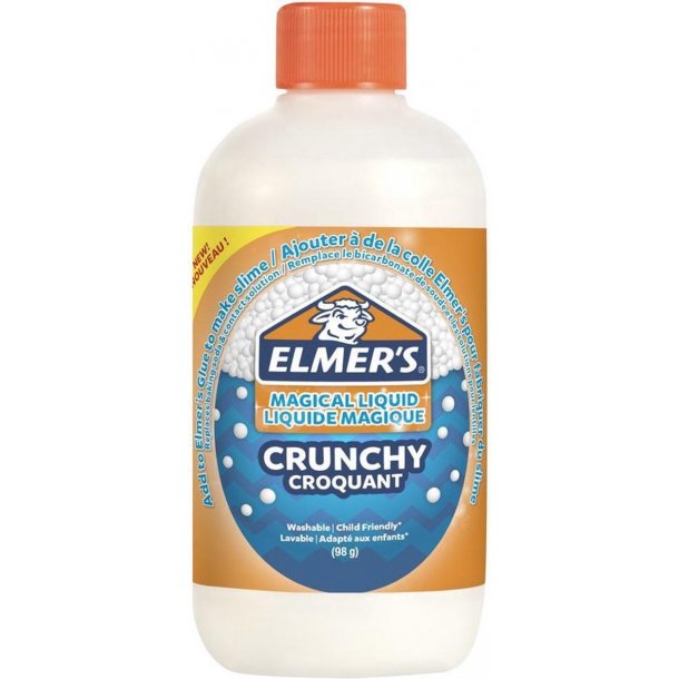 Nu kan du lave dit eget slim med denne magiske væske med sprøde små stykker indeni! Alt hvad du behøver er PVA-lim og denne magiske væske, der er lavet bare for at skabe slim. Med denne alt-i-en-formel undgår du at bruge bagepulver og kontaktlinser. Start med at hælde PVA-lim i en skål, og hæld derefter lidt af denne blanding ad gangen under omrøring grundigt, fortsæt indtil alt er blandet og det er blevet til slim. Ælt derefter, indtil dit slim får den ønskede konsistens!