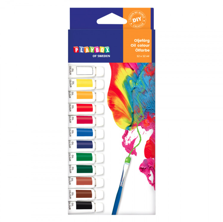 Et farvesæt med 12 forskellige farver i 12 ml flasker!