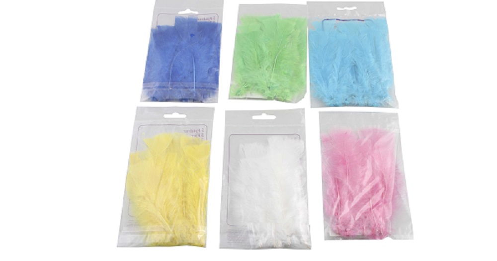 Fjerene kan bruges til forskellige kunsthåndværk som dekoration af et æg eller dejlige festdekorationer. Der er 6 forskellige farver og 5 fjer i pakken.