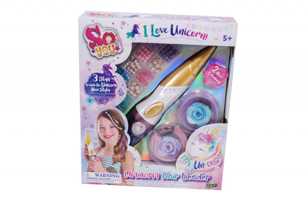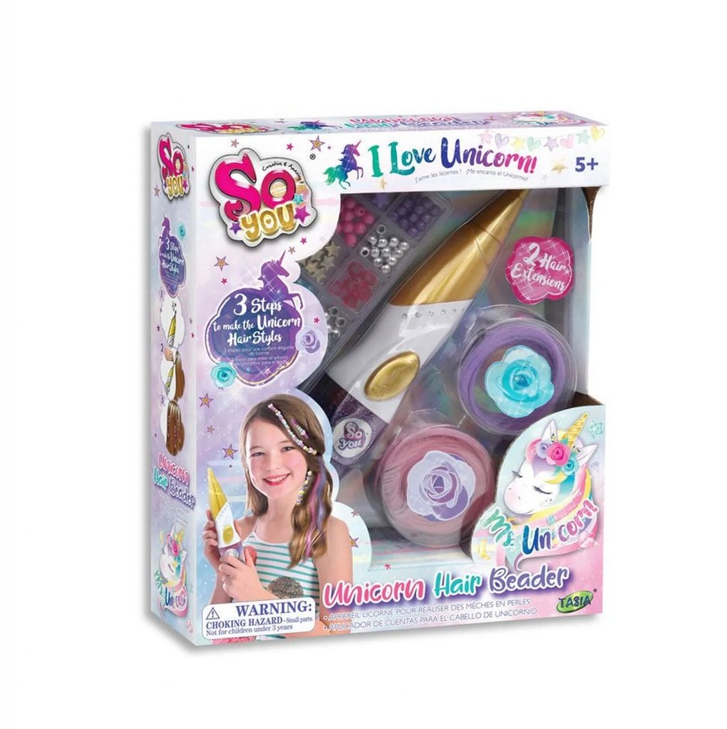 Med Unicorn hår tråder kit kan du nemt anvende de smukkeste ornamenter i dit hår. Brug de medfølgende perler eller pink eller lilla udvidelser til at skabe et unikt udseende til dit hår.