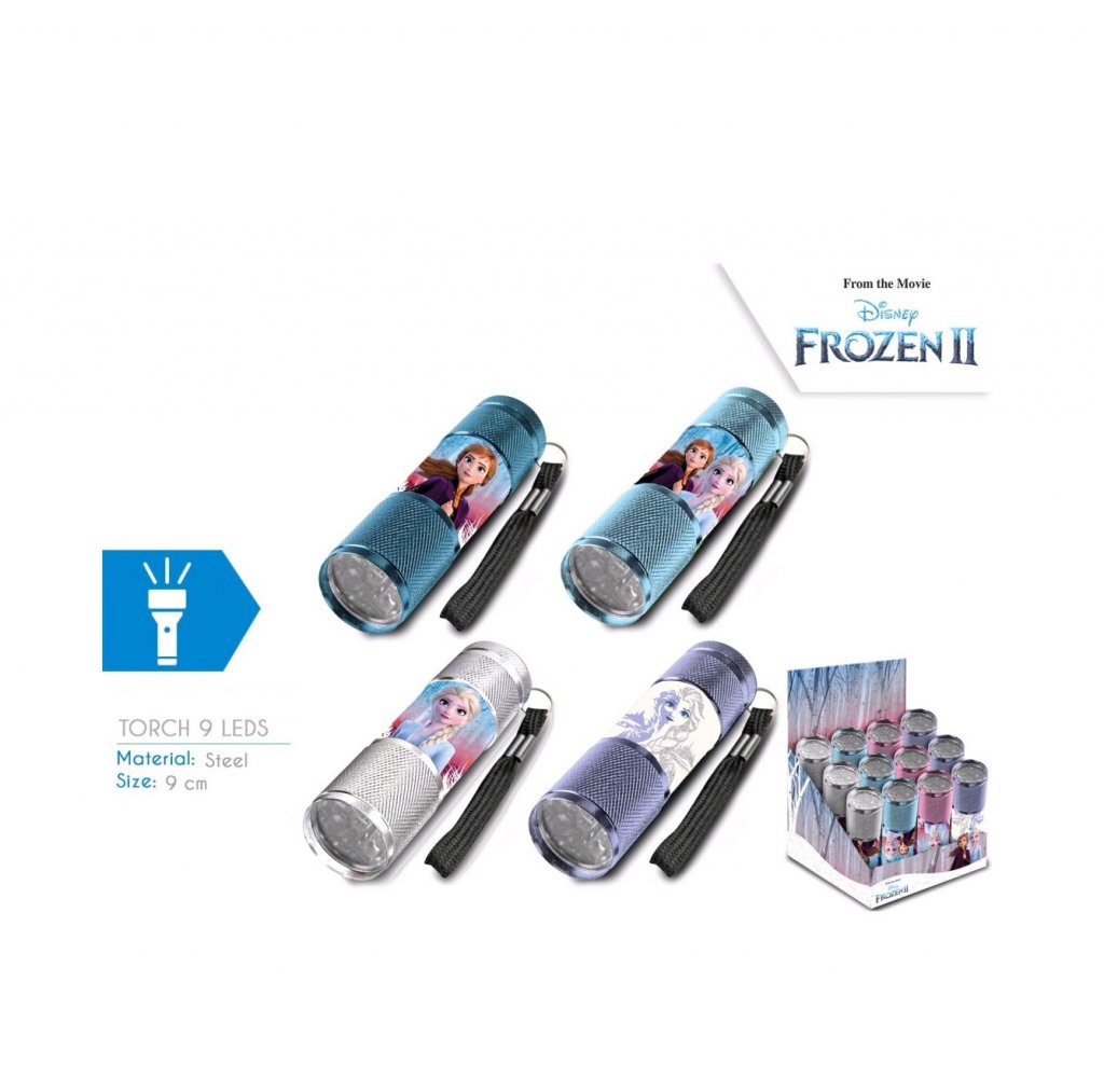 LED lommelygte i metal med 9 LED celler og Frost motiv.