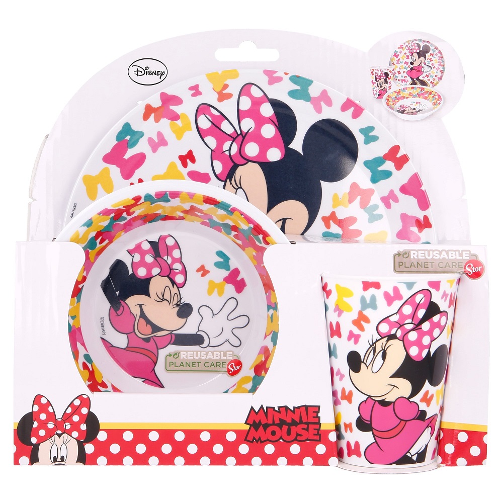 Sættet indeholder 1 tallerken, 1 skål og 1 glas!