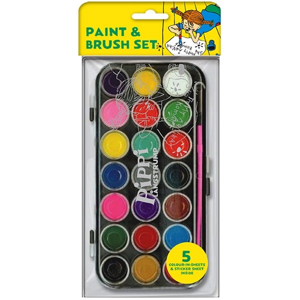 En sjov maling sæt med flere designs fra Pippi Langstrømpe. Der er 21 forskellige fine akvareller at vælge imellem! Du kan også børste, klistermærker og fem ark billeder til farve. Perfekt tidsfordriv under regnfulde eller solrige dage