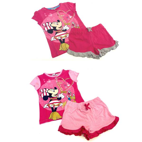 Køb Minnie Mouse shorts og en kortærmet t-shirt, der også kan bruges som pyjamas. Tøjsættet kan også bruges af dit barn udendørs, hvis det er varmt. Fås i lyserød eller mørk pink.