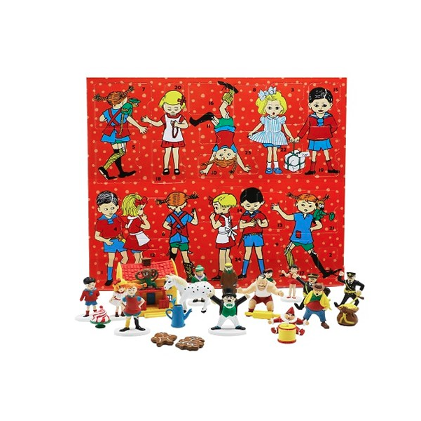 Kalenderen indeholder 24 overraskelser i form af figurer og genstande fra Pippi Langstrømpe. Den ultimative julekalender for Pippi Langstrømpe-fans!