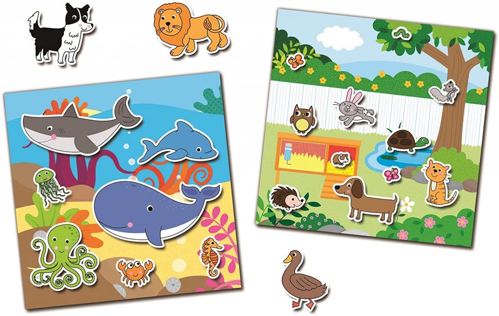 At fortælle historier udvikler børns sprogfærdigheder og at sætte klistermærker igen udvikler opfattelse og fingerfærdighed. Klistermærkebilleder giver børn mulighed for at fortælle historier, som de selv har opfundet og skabt. Historien er baseret på et af baggrundene i scrapbogen, som historien kan bygges omkring. Klistermærker kan genbruges, så du kan oprette så mange forskellige historier med baggrunde og klistermærker, som du nogensinde kan komme med. Mærkatbogen kan bæres let og enkelt, selv til en tur, en hytte, en udflugt eller en bil. Der er otte forskellige landskaber i bogen, hvor du kan lave pæne arrangementer med de 150 klistermærker, der følger med den. Etiketter kan genbruges igen og igen.