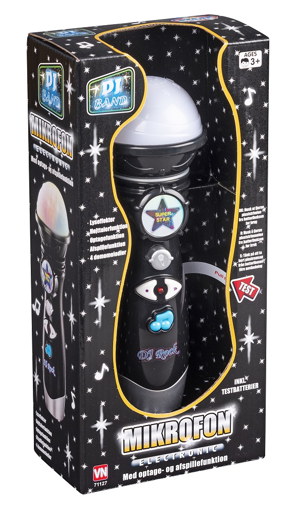 Mikrofon med lydoptagelsesfunktioner, der fungerer perfekt til at afspille det, du har sunget i mikrofonen!
