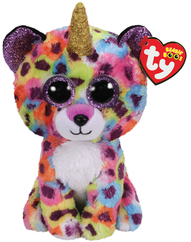 Fin og blød bamse leopard Ty, der er 17 cm. Gosedjuret er lavet af blødt stof og dets øjne glinsende. Gosedjuret er farverige med en hvid plet på brystet, og sidder fast. En sød gydning og kelkamrat at dit barn vil elske!