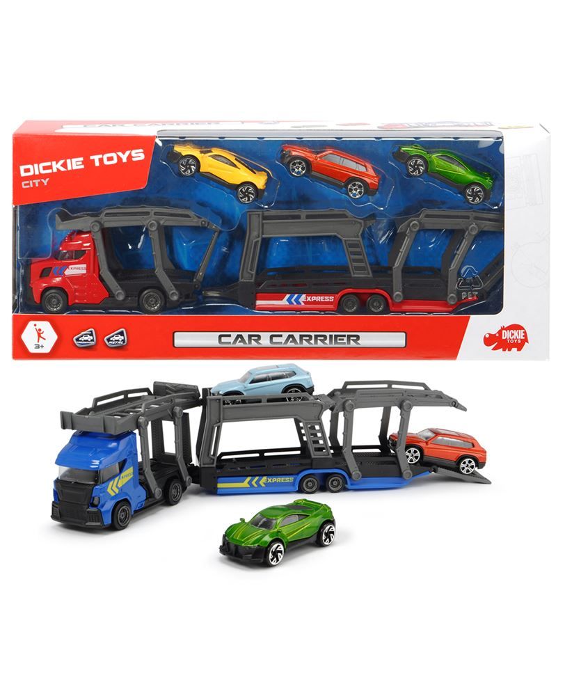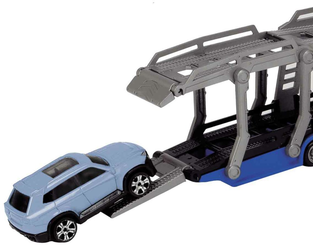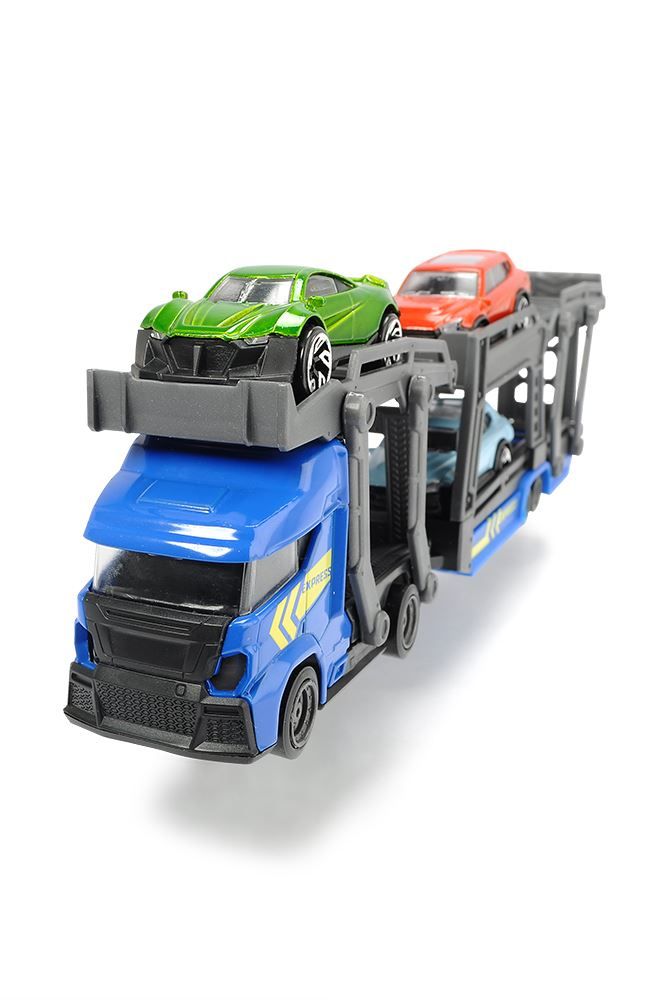 Bær din bil sikkert med denne motortrafikvej, det har gratis hjul og bevægelige dele. Lastbilen leveres med tre sjove metal biler. Sænk lastbil ramper og transportkøretøjer til deres endelige bestemmelsessted. Barnet kan også låse klapvogn og bare spille med lastbilen uden biler.