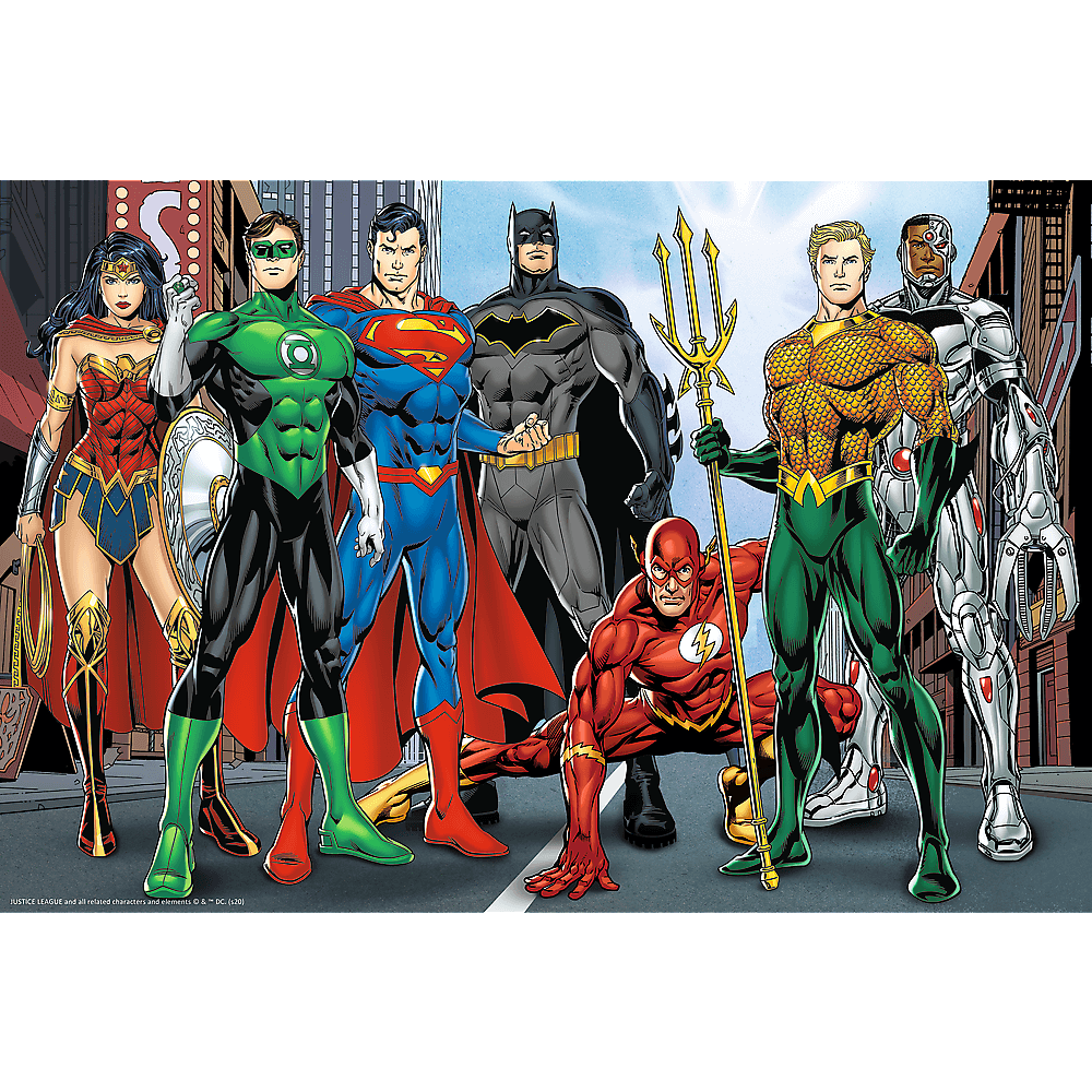 Justice League-superhelte udgør dette 160-bit-puslespil, der er designet til alle fans af Justice League og dets eventyr. Når puslespillet er samlet, er størrelsen 41x27,5 cm.