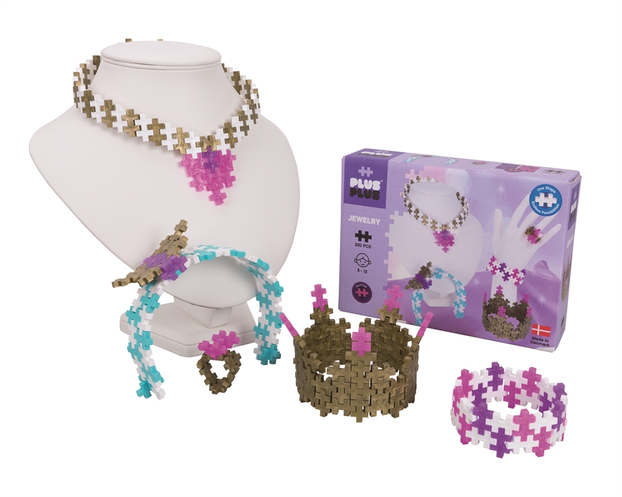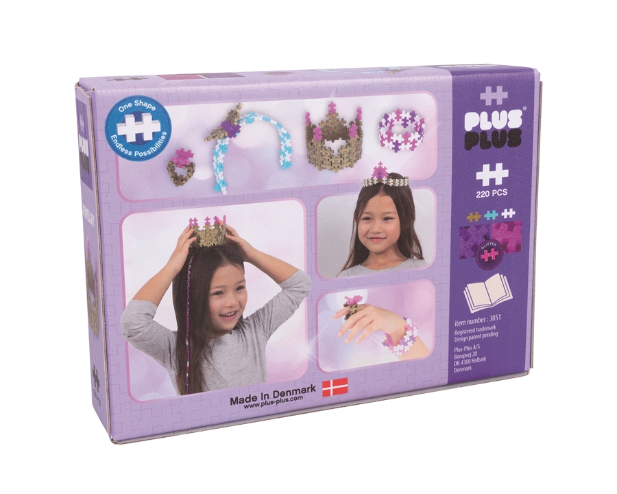 Plus-Plus er perfekt til små hænder og store ideer. Med hjælp fra de instruktioner, der er inkluderet, kan du oprette dine egne smykker! Gør dig klar til timevis af kreativ leg med denne Plus-Plus smykker sæt, Indeholder 220 stykker i blandede farver, såsom guld, pink og lilla glitter.