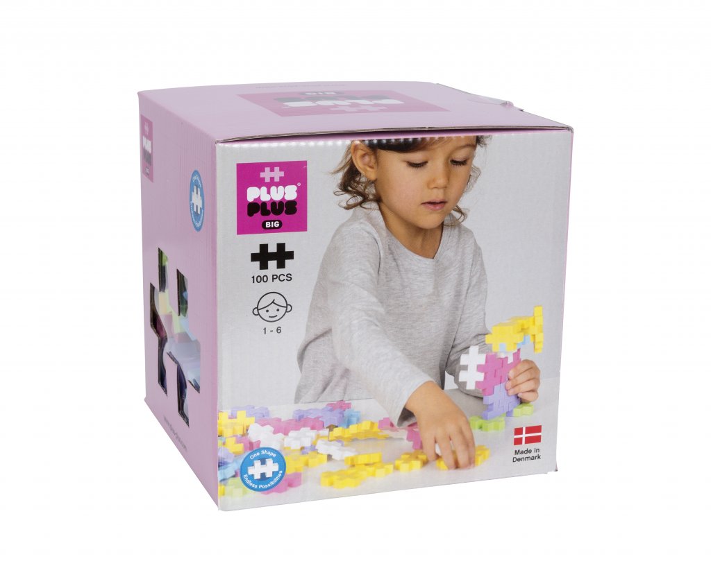 Dette produkt indeholder 100 Plus-Plus BIG i pastelfarver. Farveblandingen består af lyseblå, mintgrøn, lyserød, pastel gul, lys lilla og hvid Plus-Plus. Med denne pakke kan de mindre børn lære at bygge og skabe forskellige figurer og former. Produktet er kompatibelt med alle andre Plus-Plus BIG-produkter.