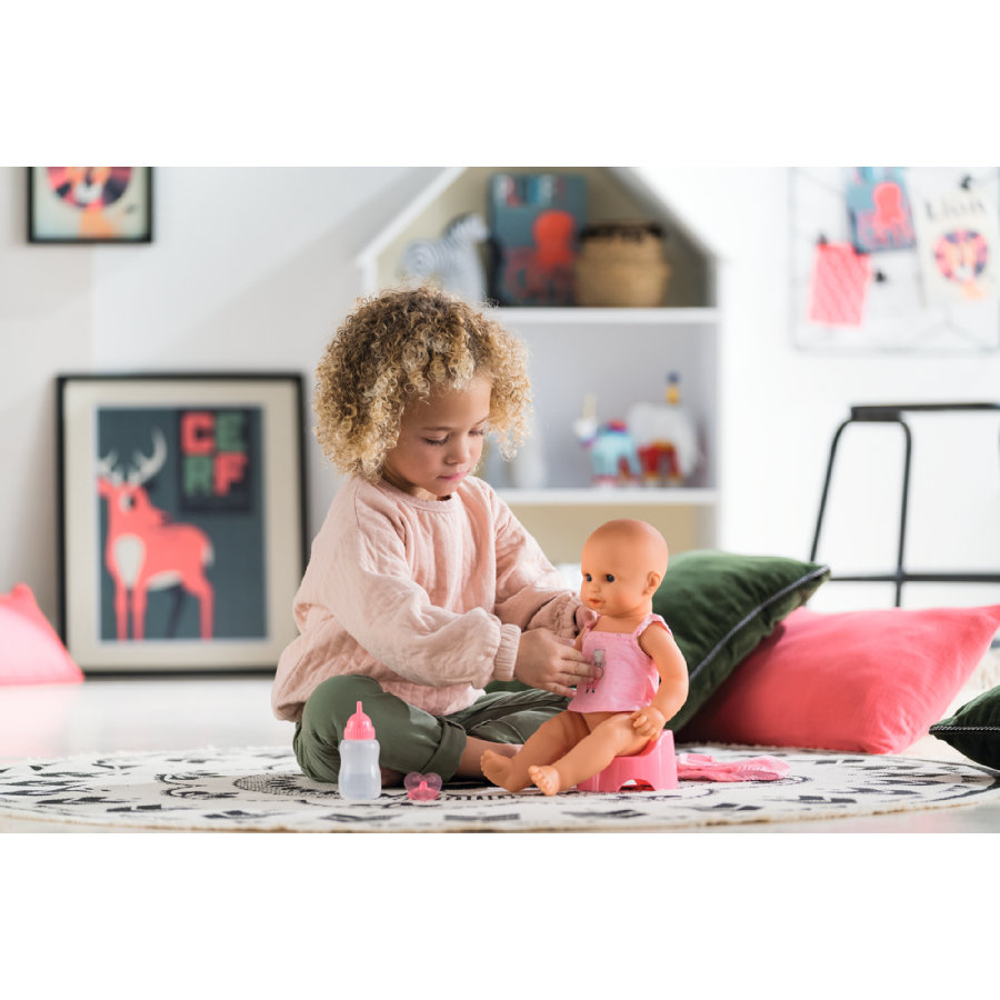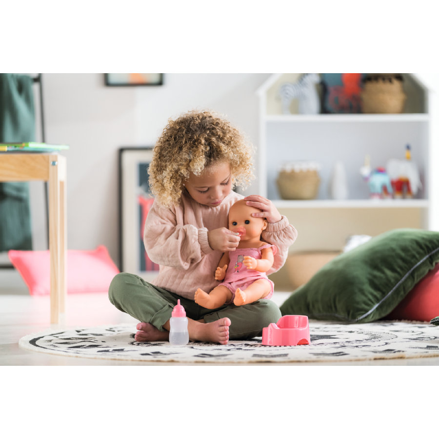Denne smukke dukke kommer med sin flaske, potte og baby, så du kan fodre hende og lære hende at bruge badeværelset. < p> Vidste du, at Emma drikke og tisse for real? ""det er ligesom en rigtig baby! Giv hende først for en drink med sin genopfyldelig flaske, og tryk på maven for at gå på toilettet. det omfatter også en baby, hvis hun græder, derefter på at berolige hende ned og sove roligt.