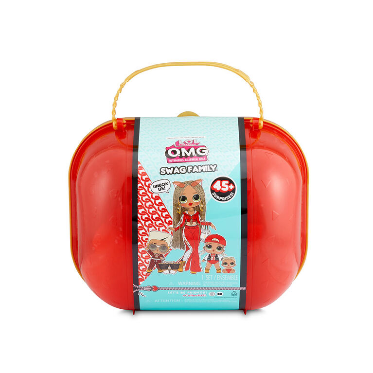 Åbn LOL Surprise OMG Swag familieboksen og deltag i de 45 forskellige overraskelser, der vil blive tilføjet. Dukkerne består af storesøsteren i Swag-familien, der altid er klædt og klar til at blive set, 2 børn, en pige og en dreng, der venter på at blive klædt ud af dig! Den mindste baby er også med og er klar til at have lige så meget Swag som sine søskende og har også med sin hamster. Babyen og hamsteren har en ekstra funktion, dypp dem i vand og se hvilken del af kroppen, der skifter farve!
