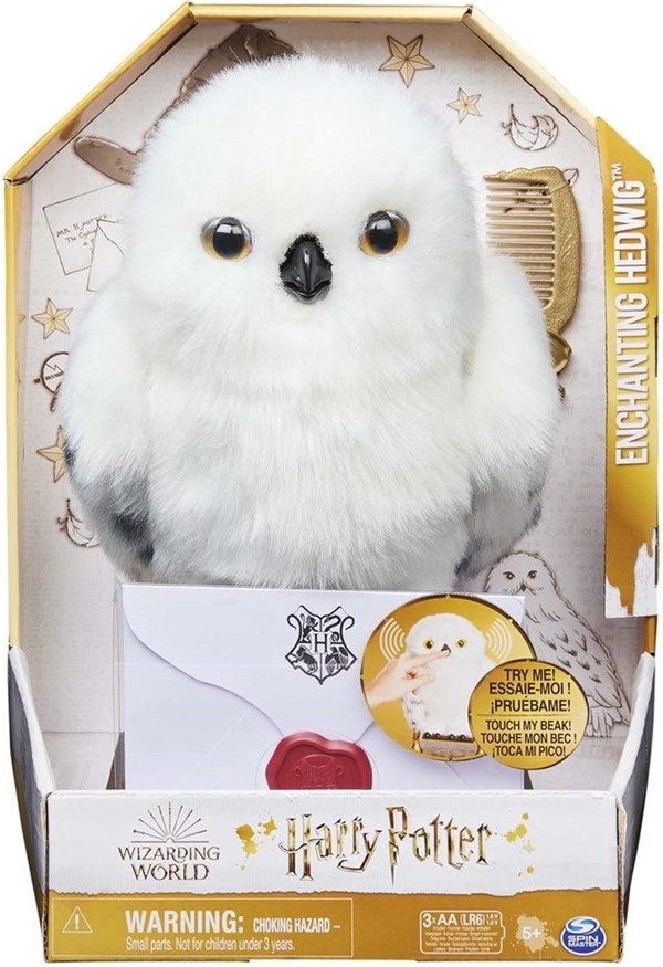 Hedwig kommer med en kam, så du kan børste ham af efter hans lange rejse fra Hogwarts! Hedwig har taget et brev med sig, der ser bekendt ud. Det er det samme brev, som Harry Potter modtog, da han sluttede sig til Hogwarts! Når du rører ved Hedwigs næb, begynder uglen at vågne til live og giver en kvidrende lyd, mens Hedwig slår med vingerne!