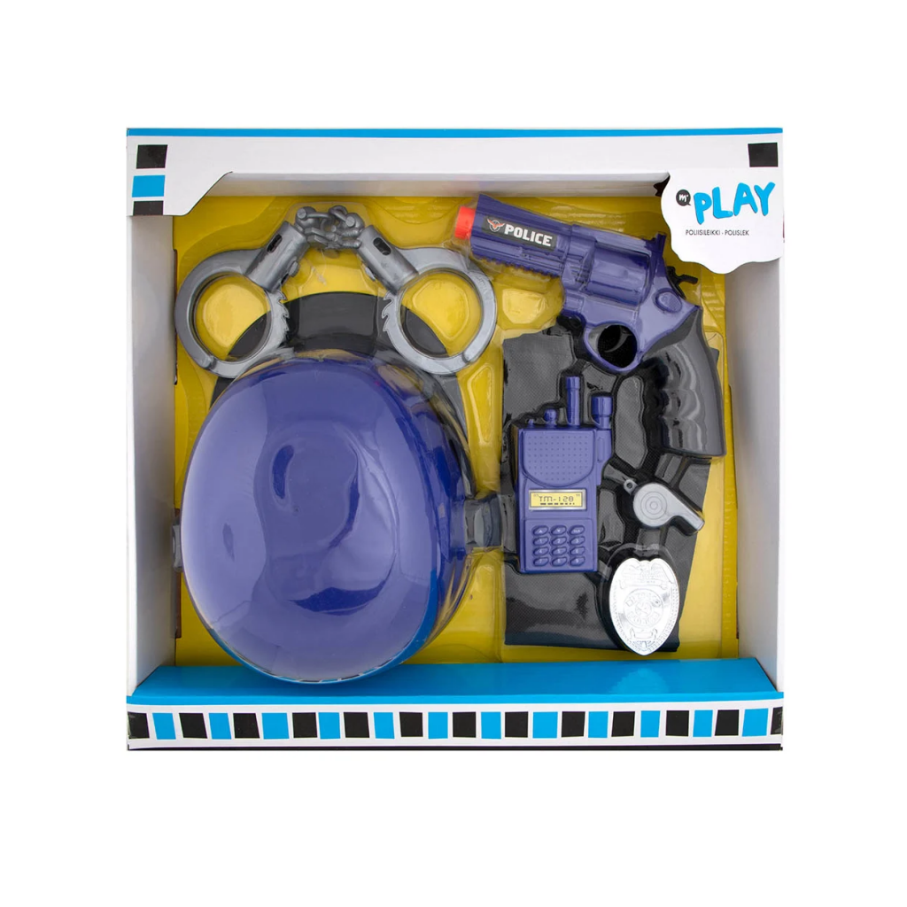 Lad børnene udforske verden som små betjente med Politisæt! Dette spændende sæt er perfekt til børn, der elsker at skabe egne eventyr og lære om politiets arbejde. Sættet indeholder flere realistiske tilbehør, der giver børnene alt, hvad de behøver for at løse spændende sager og hjælpe andre. Inspirer til fantasifuld leg, hvor børnene kan udforske retfærdighed, samarbejde og problemløsning.