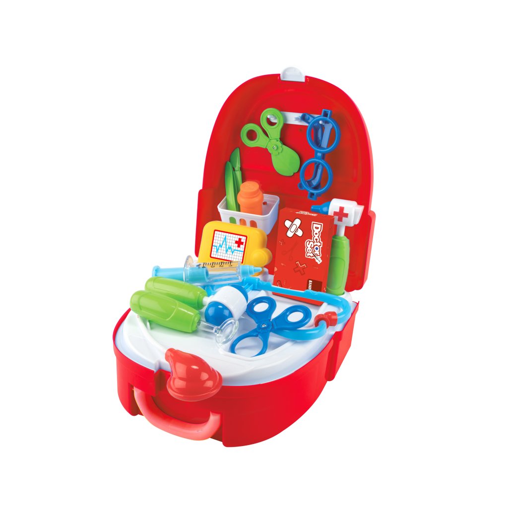 Doktorsset er perfekt til rollespillet og forestillingsleg, kan børn foregive play læge og sættet omfatter flere tilbehør til at forkæle sine venner. Alt tilbehør passer i bæretaske, så unge læger kan tage sig af deres syge dukker eller bamser, uanset hvor de er. ! Det har et håndtag, så det er nemt at bære eller slid på ryggen som en rygsæk