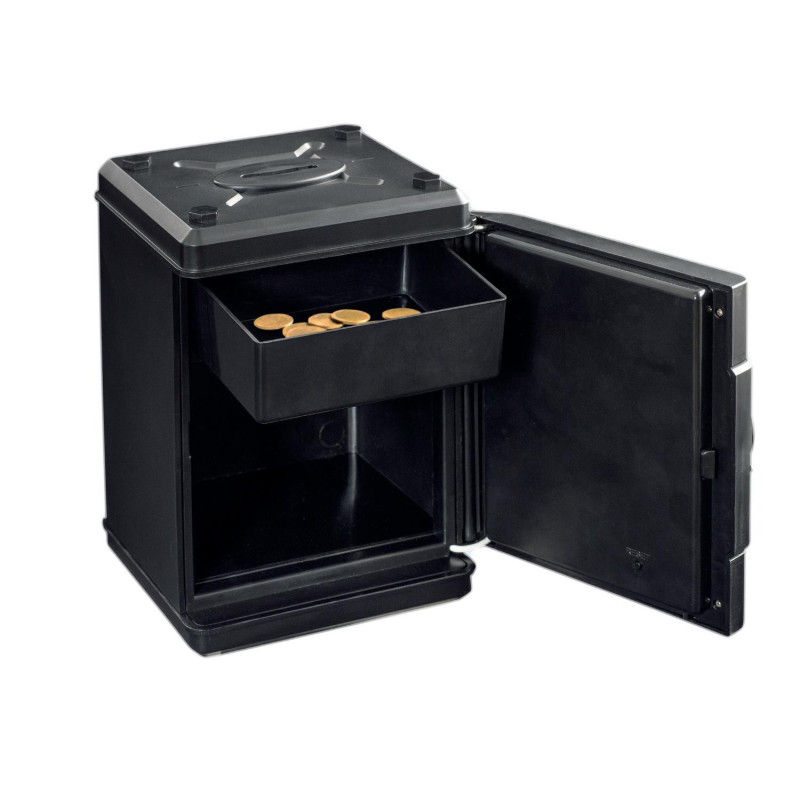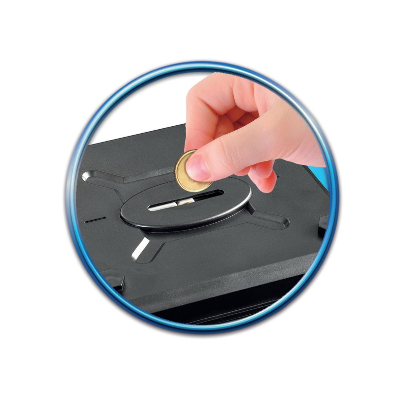 Pengeskab leveres med personlig kode og automatisk balancetæller. Digital mønttæller til svenske kroner og lydsignal. Et sejt pengeskab, som barnet vil kunne bruge til at opbevare deres yndlingslegetøj, penge, hemmelige beskeder i!