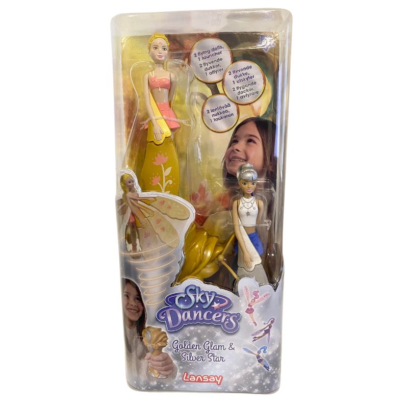 Oplev Golden Glam & Silver Star, der kommer direkte fra Den Enchanted Garden! Placer Sky Dancer i hendes løfteraket, træk i snoren og se hende flyve væk! Wow, det er så magisk! Oplev hele Sky Dancers-familien: Fuchsia Fantasy, Miss Mint og mange flere! Alle af dem har flerfarvet hår og venter bare på, at du får dem til at flyve!