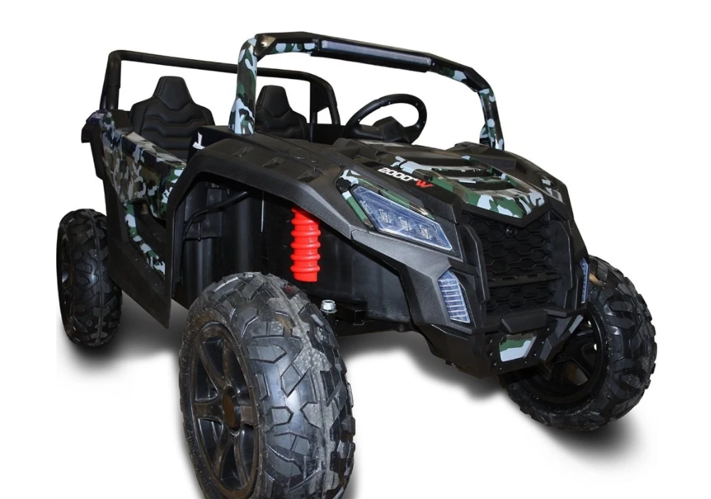 Elbil i form af en terrængående bil fra Azeno er den perfekte elbil, når du vil på tur med din bedste ven, fordi den har plads til 2 børn, der godt kan lide at tage på eventyr i stilhed! Elbilen er udstyret med 2 lædersæder, gummidæk der kan komme igennem enhver vej uden problemer som en rigtig bil!