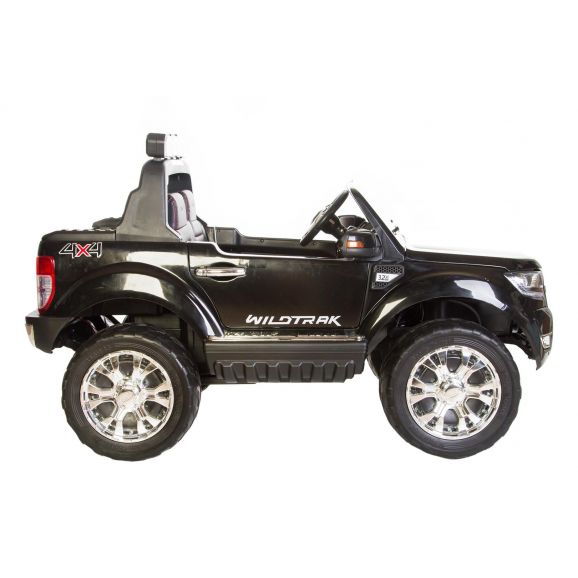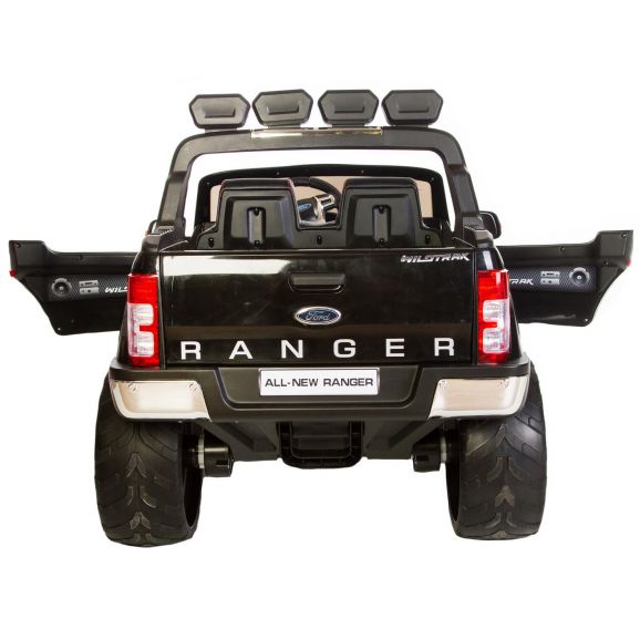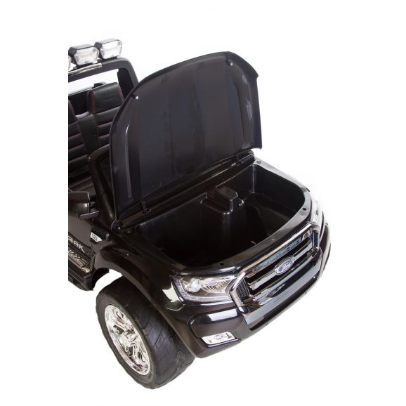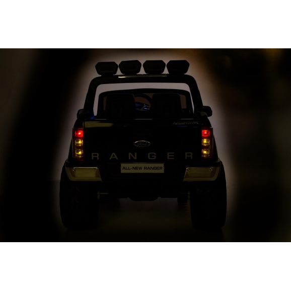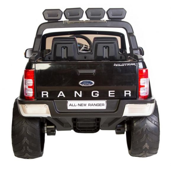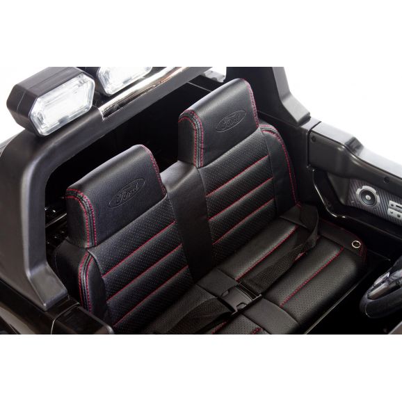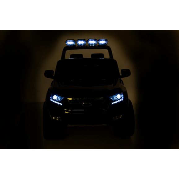 Fræk og cool elbil Ford Ranger med sort stilfuldt design og lædersæder. Styr bilen med fjernbetjening, barnet kan sidde i bilen, mens den voksne styrer bilen. Børnene kan køre bilen selv, når de selv har lært at kontrollere bilen. Elbilen har eksklusive gummidæk til mere støjsvag og jævn kørsel samt lyd- og lysfunktioner. Glem ikke at tænde lysene om aftenen.