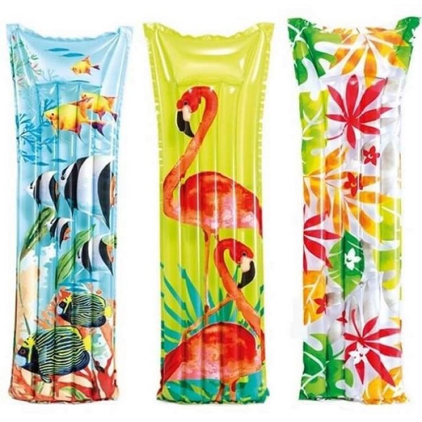 Disse luftmadrasser med 2 luftkamre (183 x 69 cm) er perfekte til brug både i haven, stranden og i poolen. Fås i 3 friske farverige designs med fantastiske hawaiiske motiver.