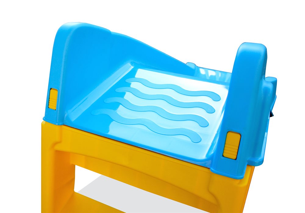 Når barnet har klatret op ad de let tilgængelige trin, venter en 124 cm lang rutsjebane, som giver fartfyldt og glad leg. Rutsjebanen er nem at både samle og skille ad, hvilket gør den let at flytte, opbevare eller tage med efter behov.