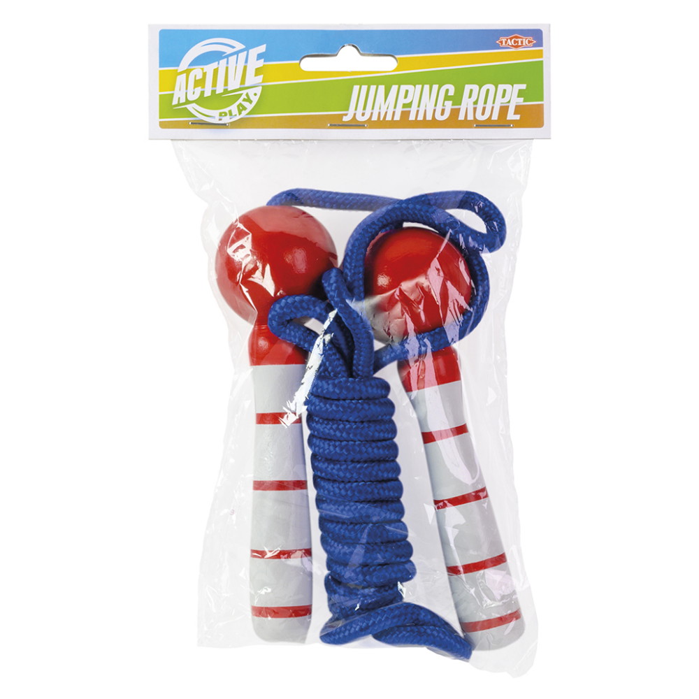Hop reb med træhåndtag fra Active Play. Springtov er god træning for både store og små, fordi det får hjertet til at arbejde og bygger din koordination. Test dig selv og se, hvor mange spring du kan klare på et minut, løb og spring spring reb på samme tid eller se om du kan klare et dobbelt spring! Et springtov er et legetøj, der er ekstremt populært blandt børn og er en god måde at træne børns motoriske færdigheder, koordination og fitness. Dette springtov er bedst egnet til en person.