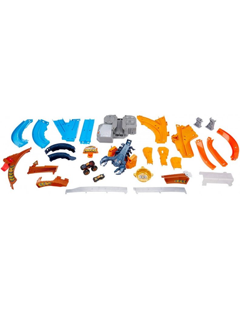 Hot Wheels Monster Track Scorpion Sting raceway-udfordring lader børn teste deres kørefærdigheder. Børnene kan oplade deres biler i løfteraket for at give bilen nok strøm til at kunne tage den vrede skorpion ned!